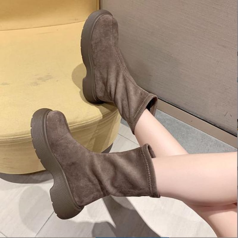 サブカル 服 地雷系 通販 ブーツ ショート スエード ヒール高5cm スポンジソール 防寒