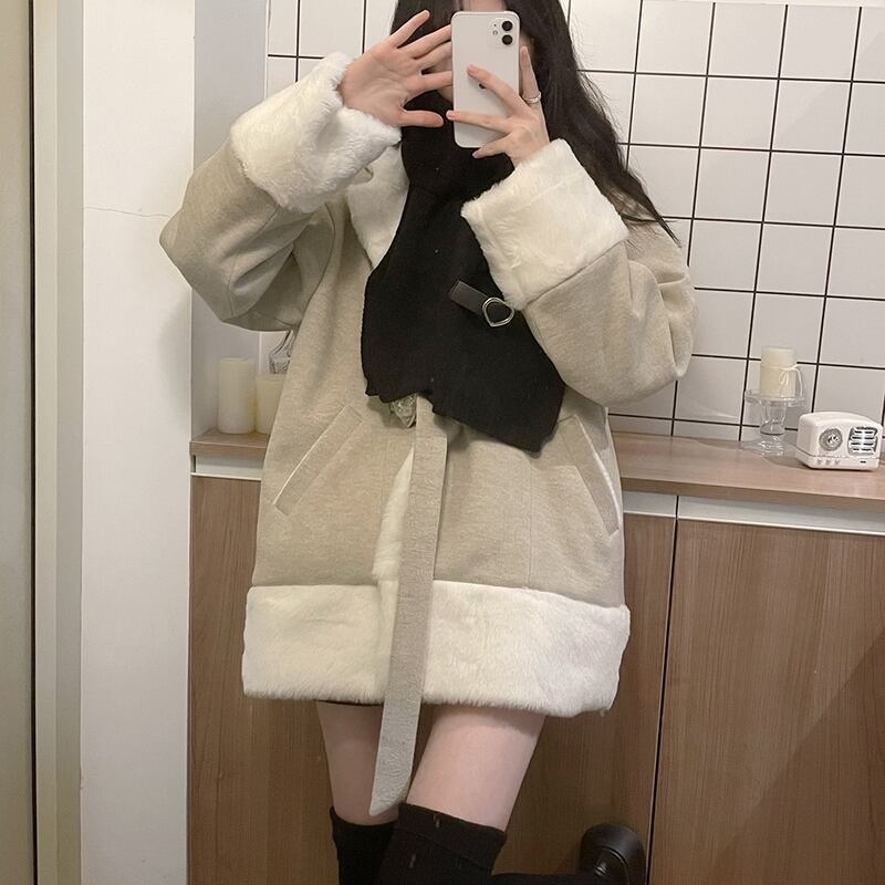 大きめなフードに暖かなフェイクファーがかわいいJKスタイルのアウターです。