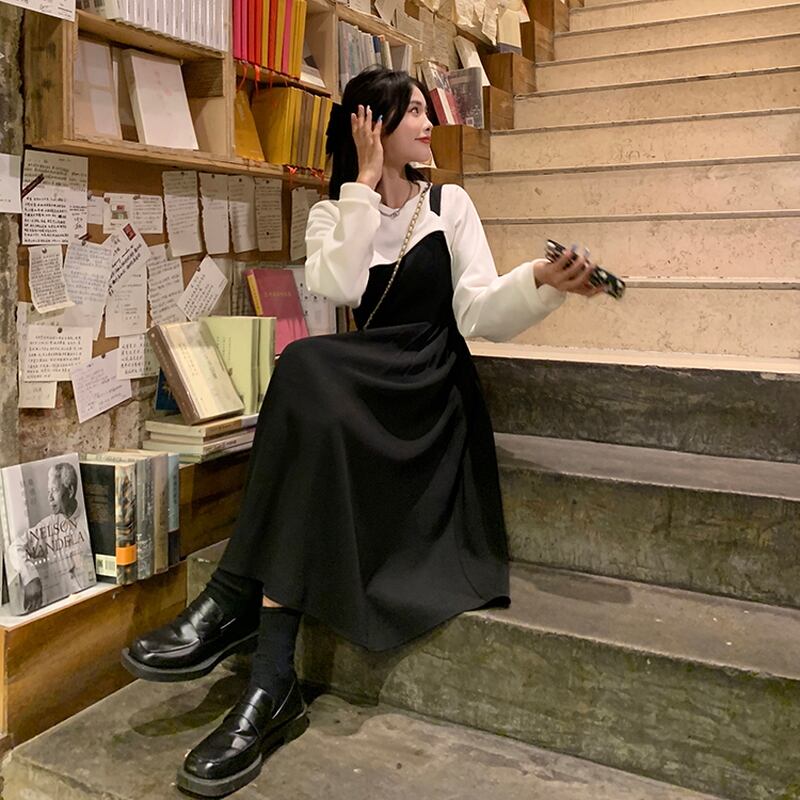 サブカル 服 地雷系 通販 JSK サスペンダースカート ミドル丈 ハイウエスト 細見え かわいい プチプラ カジュアル 韓国ファッション かわいい
