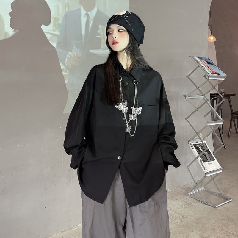 サブカル 服 地雷系 通販 黒シャツ ユニセックス butterfly メタルチェーン ゴシック 闇かわいい