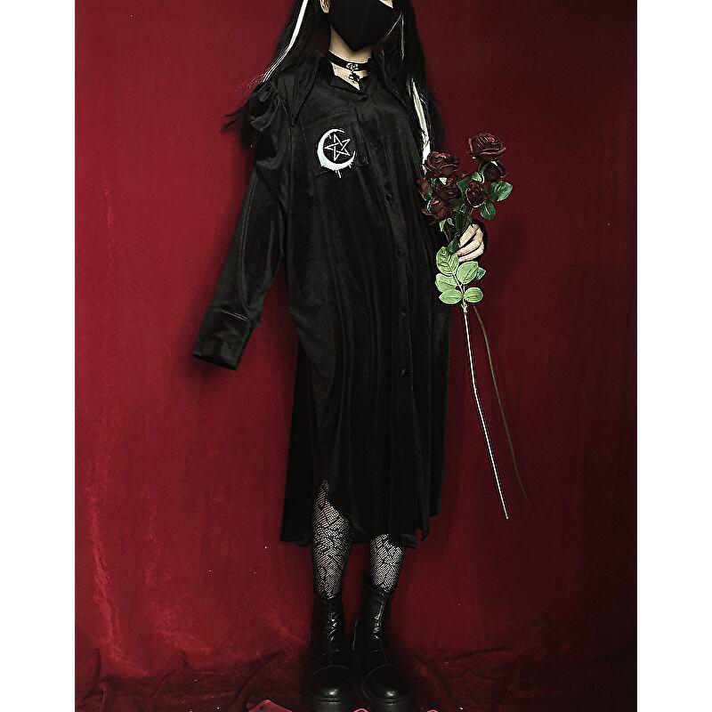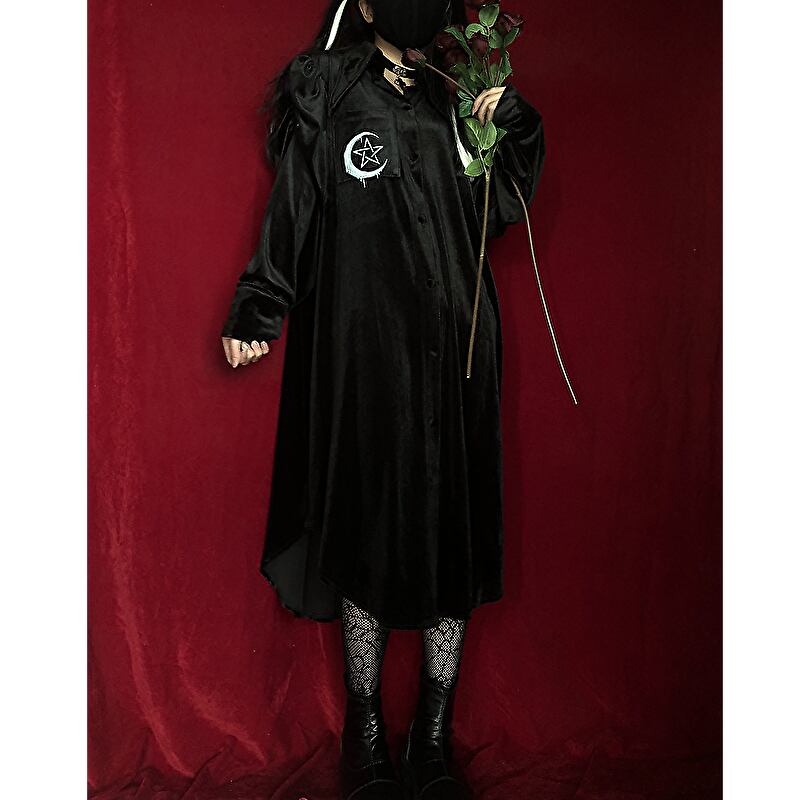 サブカル 服 地雷系 通販 MIUBシリーズ ワンピ パフスリーブ 三日月 五芒星 闇かわいい サブカルバンギャ
