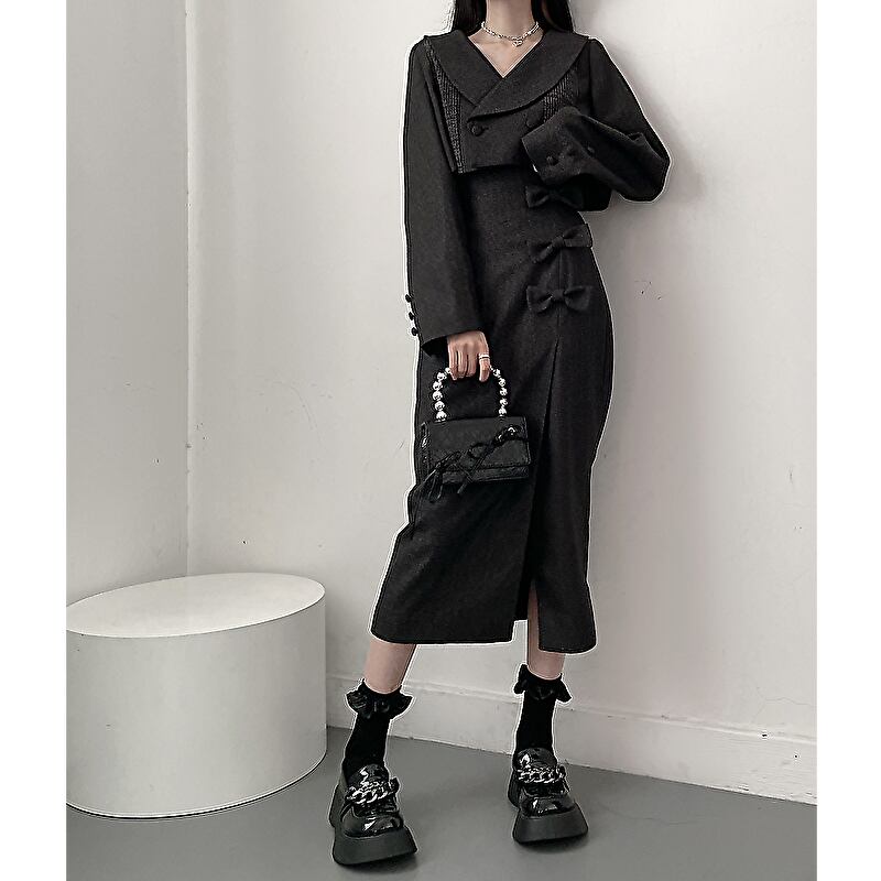 別売りのロングタイトスカートとコーデして細見えスタイルが格上げします