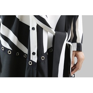 サブカル 服 地雷系 通販 ワンピ シャツワンピ ロング丈 ストライプ柄 ストラップベルト 大人きれいめ モード系 キレカジ 韓国ファッション