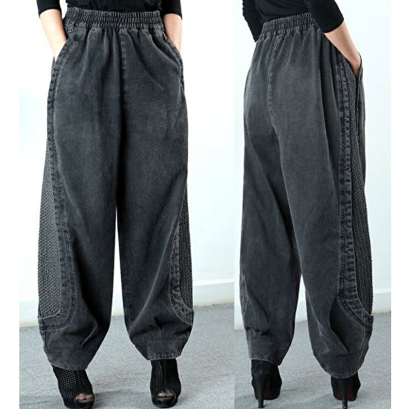 厚手のデニムにフリース裏起毛の暖かワイドパンツ