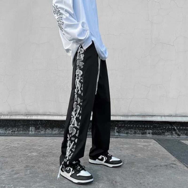 サブカル 服 地雷系 通販 イージーパンツ ユニセックス サイドライン ペイズリー 編み上げ ルーズカジュアル 量産型