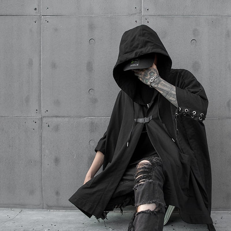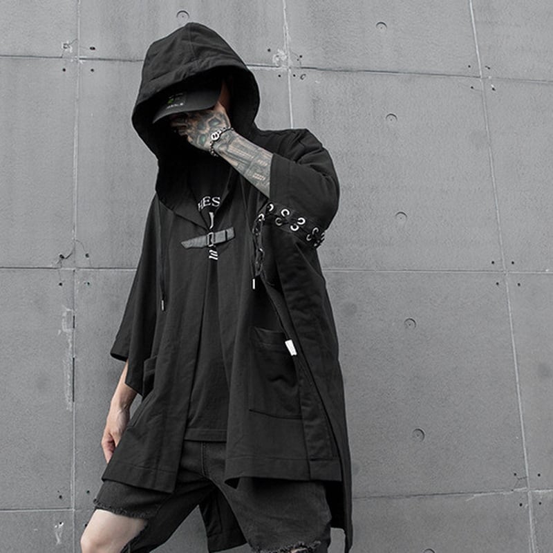 サブカル 服 地雷系 通販 メンズ ジャケット パーカー ドロップショルダー レースアップ 暗黒系 ルーズカジュアル