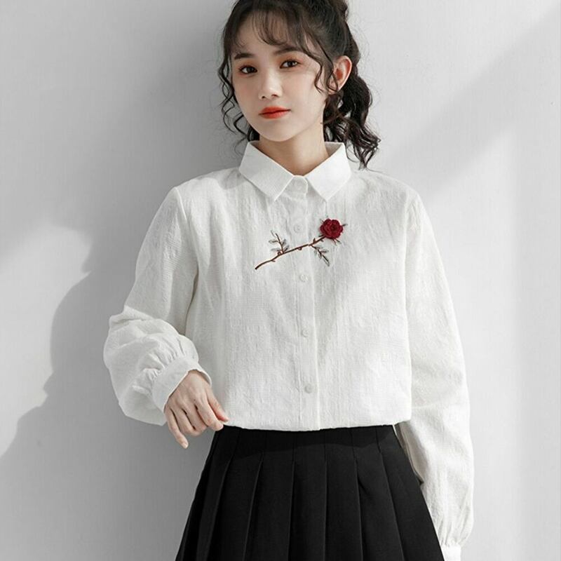 サブカル 服 地雷系 通販 春 ブラウス シャツ コットン 薔薇 刺繍 カジュアル 甘め