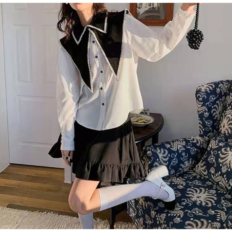 サブカル 服 地雷系 通販 春服 シャツ ブラウス ロング襟カラー 大人きれいめ かわいい カジュアル