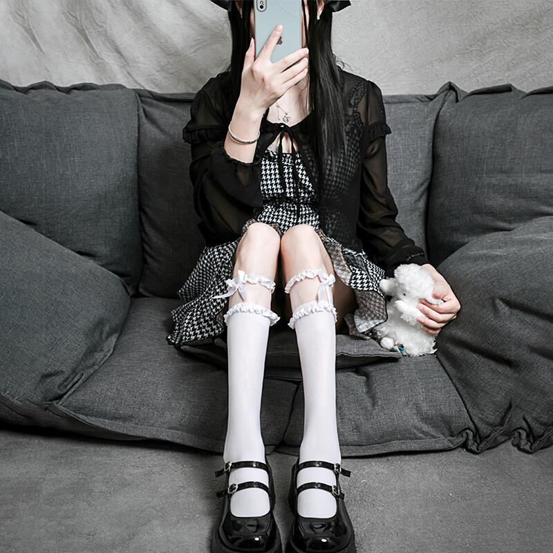 サブカル 服 地雷系 通販 ブラックホワイト ハイソックス メッシュ フリル ゴシック 闇かわいいバンギャ