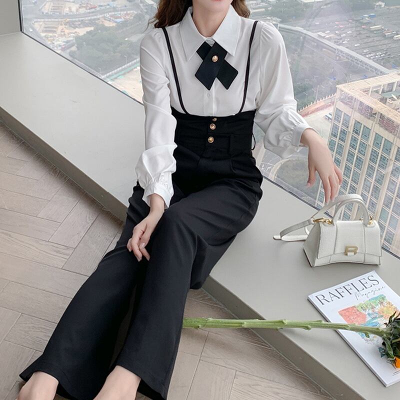 デコルテのボウタイがインパクト抜群なブラウス