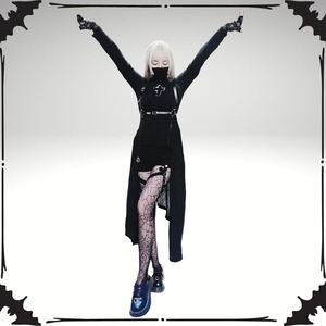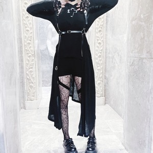 サブカル 服 地雷系 通販 Miub ワンピ ロング丈 ハーネスベルト付き 暗黒系 十字架 サブカルバンギャ