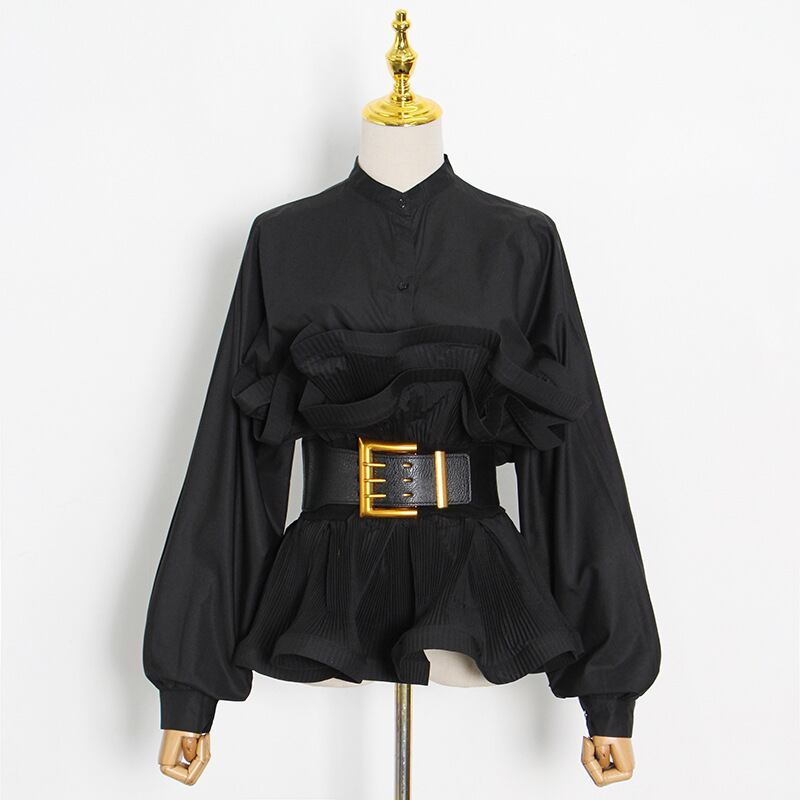 サブカル 服 地雷系 通販 ブラウス フリル 大判ウエストベルト ハイウエスト バルーンスリーブ 大人きれいめ 韓国ファッション