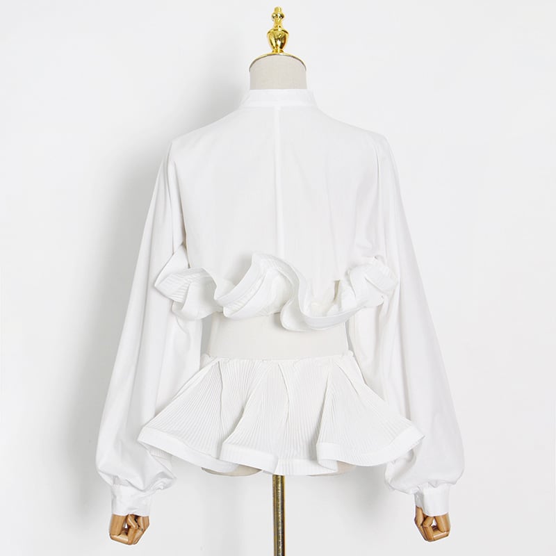 ペプラムのようなウエストラインをカバーしてくれるフリルがおしゃれなブラウス
