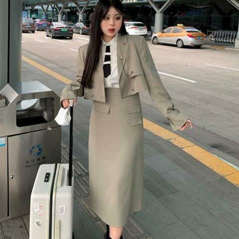 ショートジャケットにロングスカート、コーデの幅が広がるスリーピースです