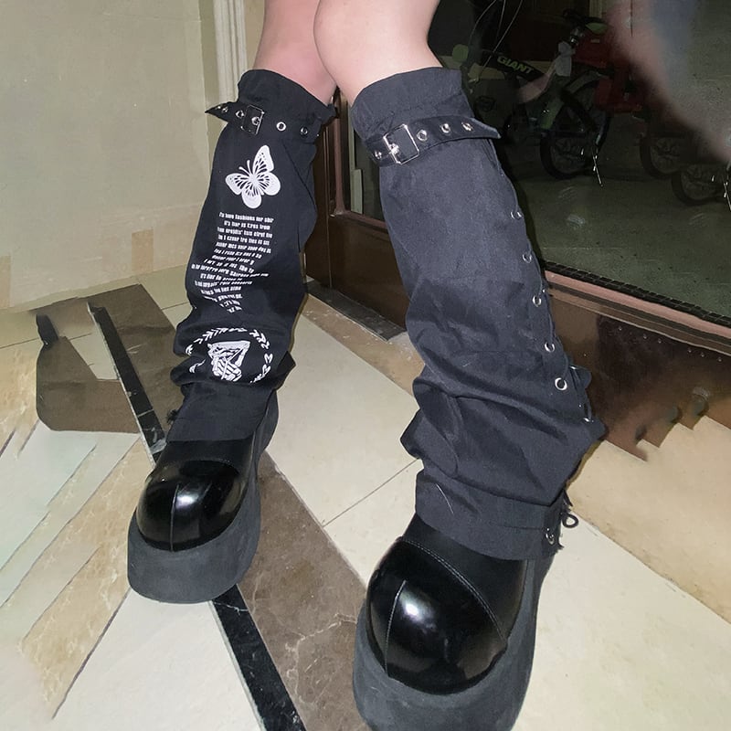サブカル 服 地雷系 通販 レッグカバー バックル butterfly ロゴ ゴシック 闇かわいい パンクバンギャ ストリート系黒