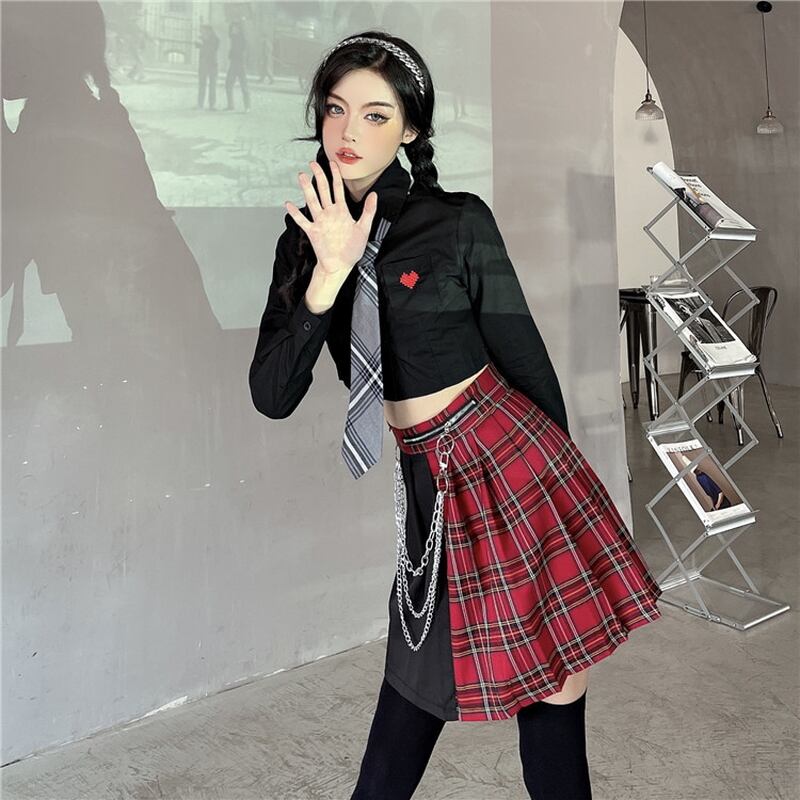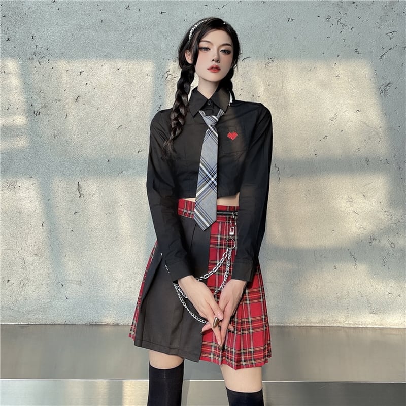 サブカル 服 地雷系 通販 黒シャツ 長袖シャツ ショート丈 闇かわいい ゴシック プリーツバンギャ サブカル服