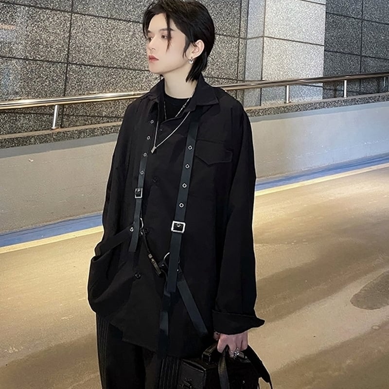 病み可愛いフラップベルトがインパクト抜群なユニセックス長袖シャツ