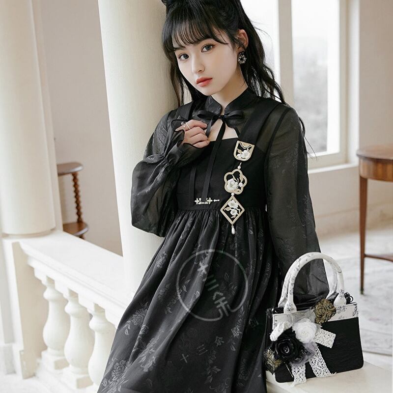 サブカル 服 地雷系 通販 十三余シリーズ ワンピース フェイクツーピース スタンドカラー レース チャイナ服 中華服 闇かわいいコンカフェ