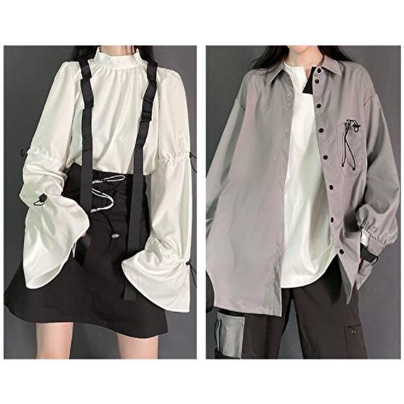 サブカル 服 地雷系 通販 pinksavior ブラウス ハイネック バルーンスリーブ 甘め JKファッション