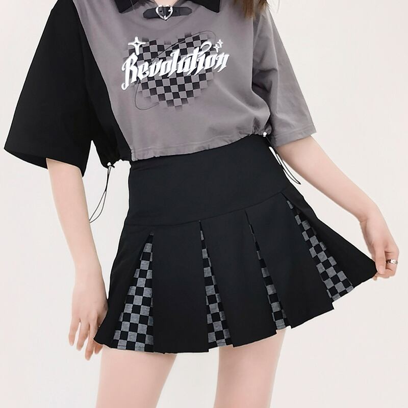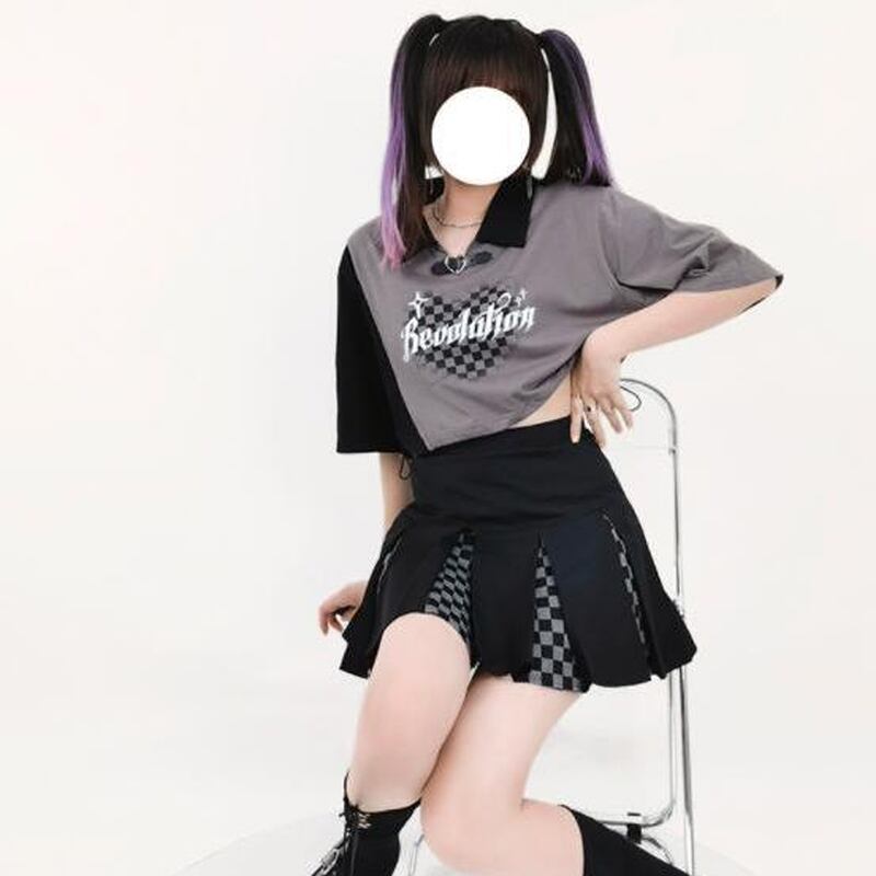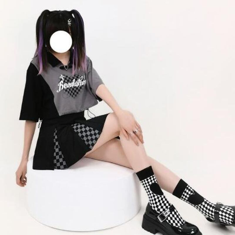サブカル 服 地雷系 通販 Catwish ロリータ スリット チェッカー柄 ミニスカ 闇かわいい