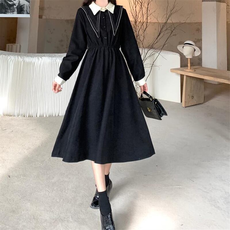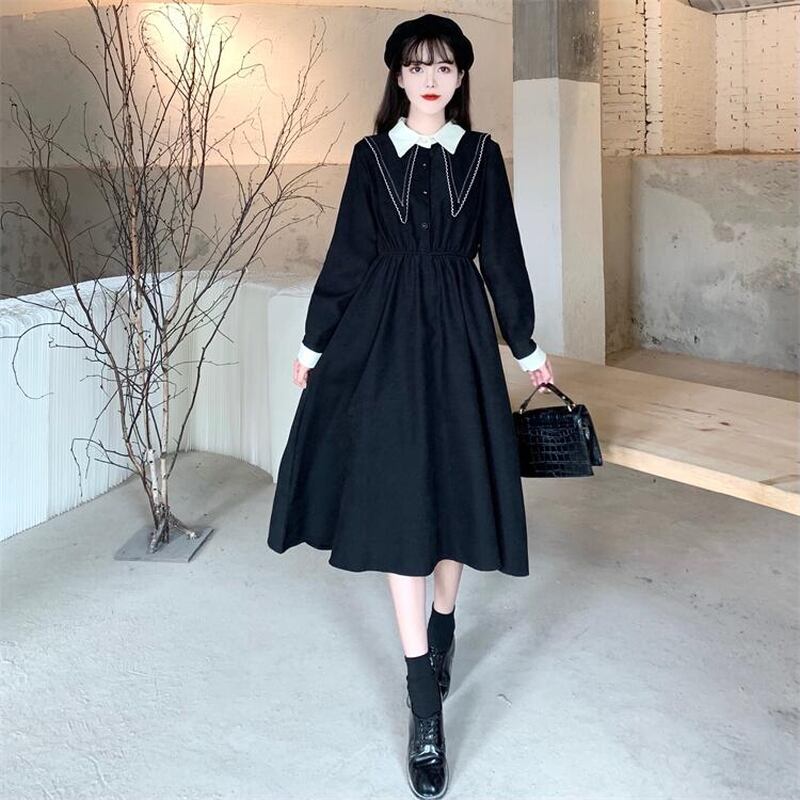 サブカル 服 地雷系 通販 ワンピ ハイウエスト ミドル丈 フェイクツーピース 闇かわいい 韓国ファッション