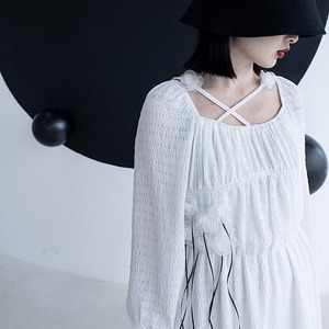 美麗なデコルテライン、胸元の薔薇がおしゃれを格上げ