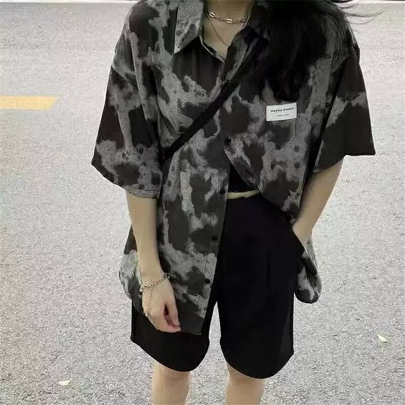 サブカル 服 地雷系 通販 半袖 シャツ レトロ 染物風 プリント柄 闇かわいいバンギャ