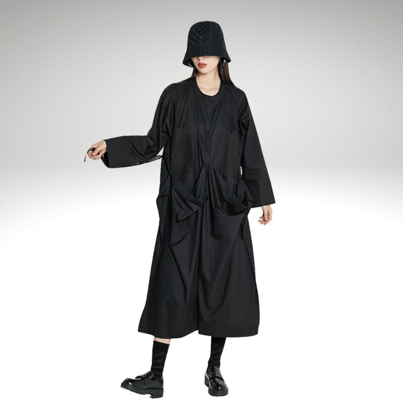 春コートのようなシルエットのゆったりした着丈が魅力のワンピです