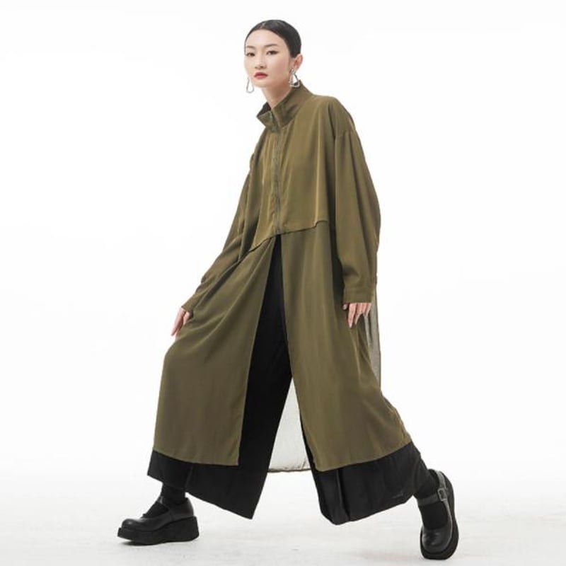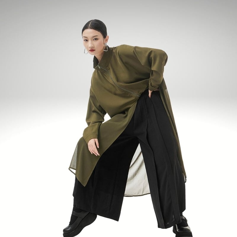即納 フリーサイズ モード系 ロングカーディガン シャツ 長袖 ZIPアップ 大人きれいめ