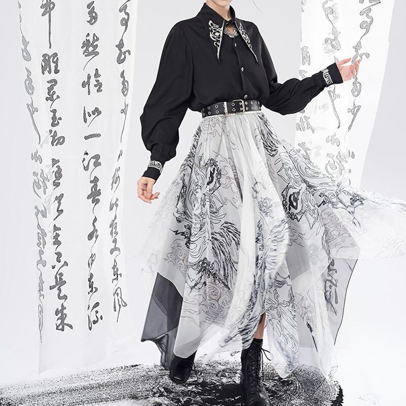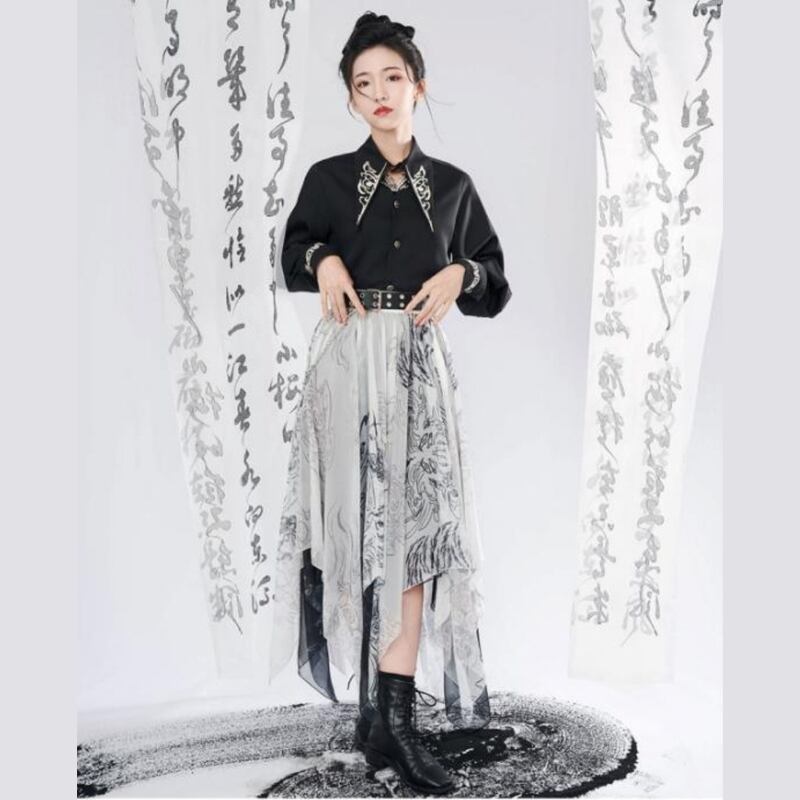 サブカル 服 地雷系 通販 アシンメトリー ハイウエスト スカート レトロ チャイナ服 中華服 闇かわいい ストリート系