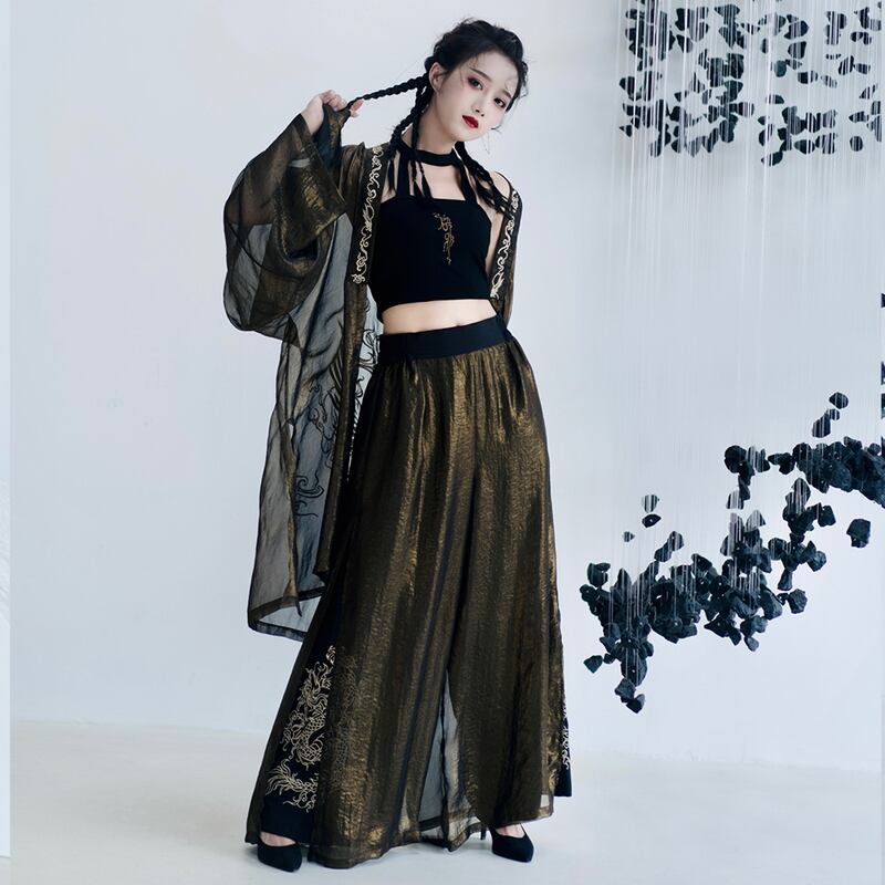 サブカル 服 地雷系 通販 袴パンツ レトロ ドラゴン 刺繍 シフォン チャイナ服 中華服 ユニセックス 闇かわいい ストリート系
