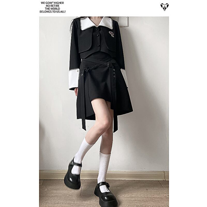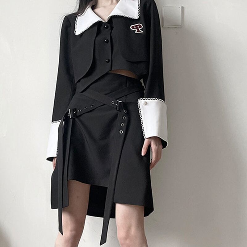 サブカル 服 地雷系 通販 pinksavior ミニスカ ラップスカート ストラップベルト 甘め かわいい 黒コーデ