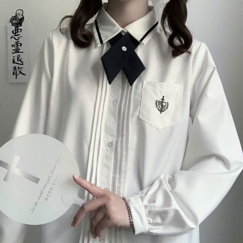 サブカル 服 地雷系 通販 ブラウス ワンポイント 刺繍 バルーンスリーブ 甘め かわいい 学園風 量産型 ロリィタ