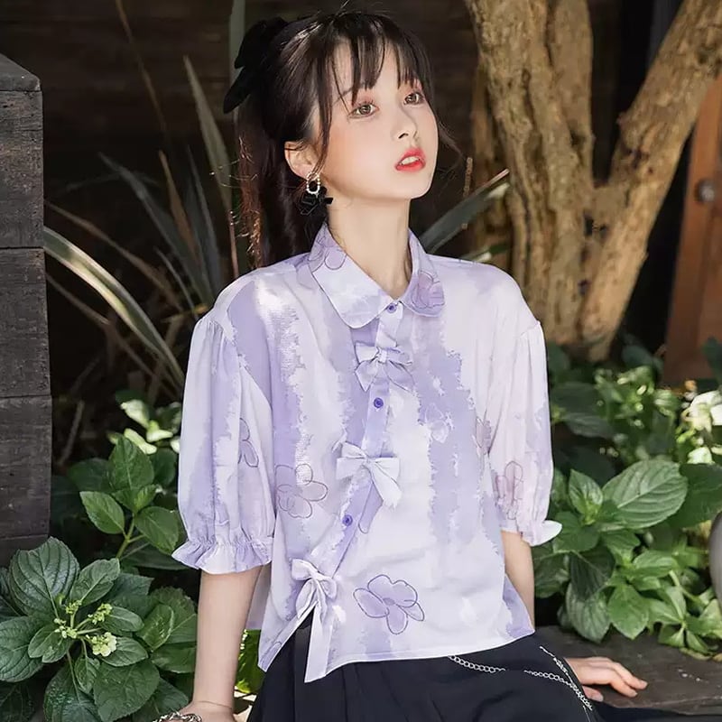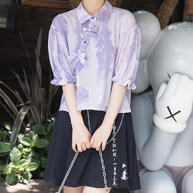サブカル 服 地雷系 通販 夏池シリーズ 狸梦 2ピース ベルト付属 ブラウス プリーツ ミニスカ 漢字 刺繍 チャイナ服 中華服 かわいい