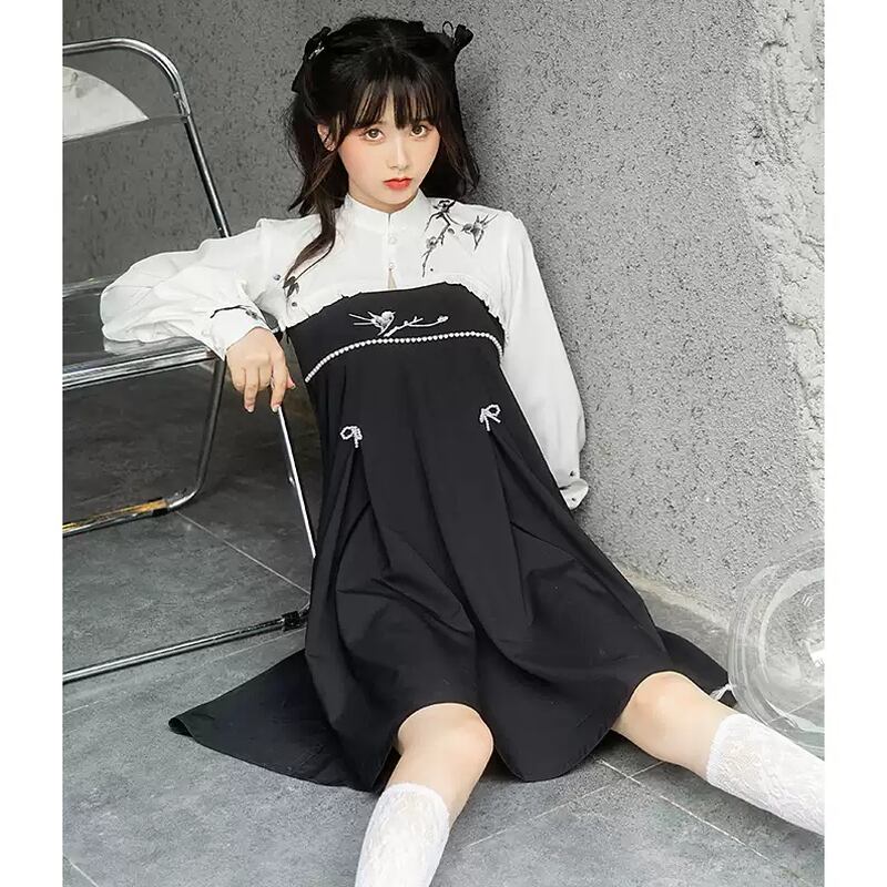 サブカル 服 地雷系 通販 夏池シリーズ 2ピース 上下セット ブラウス ボレロ サスペンダースカート 刺繍 チャイナ服 中華服 かわいい