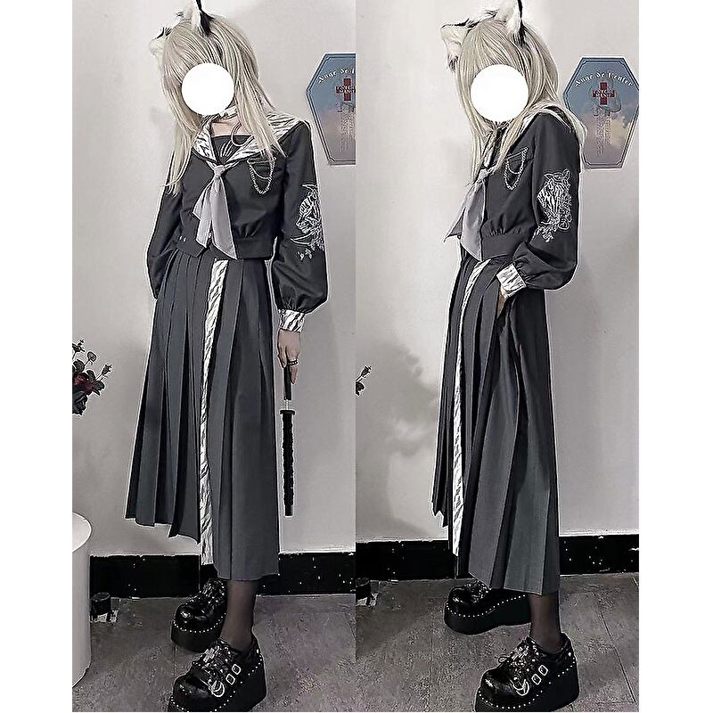 タイガー刺繍のJK制服にプリーツロング丈のツーピースです