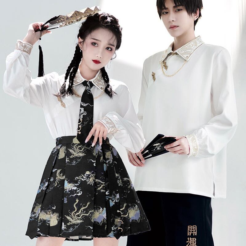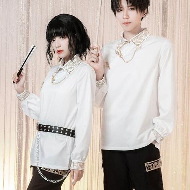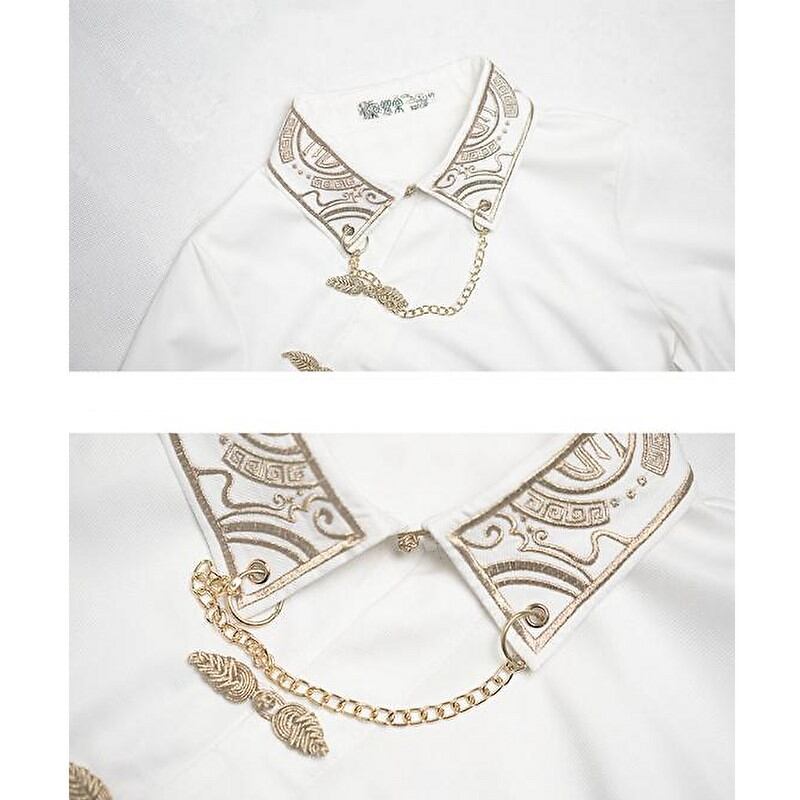 高見えする金糸刺繍がビジュアル抜群なユニセックス白シャツ