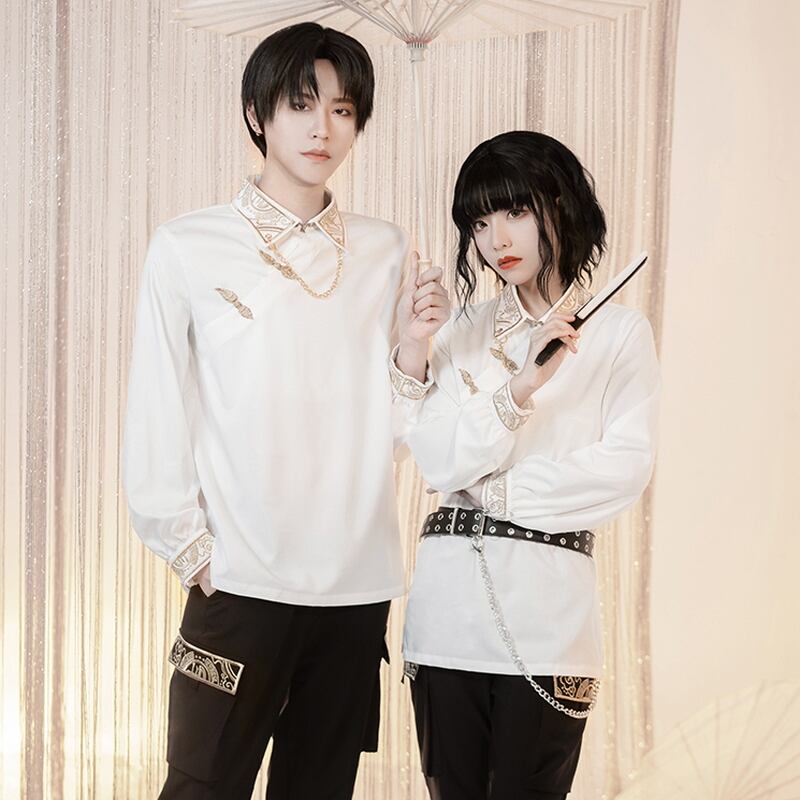 サブカル 服 地雷系 通販 シャツ レトロ ユニセックス 金刺繍 中華ボタン チャイナ服 中華服 闇かわいい 大人ゴシック