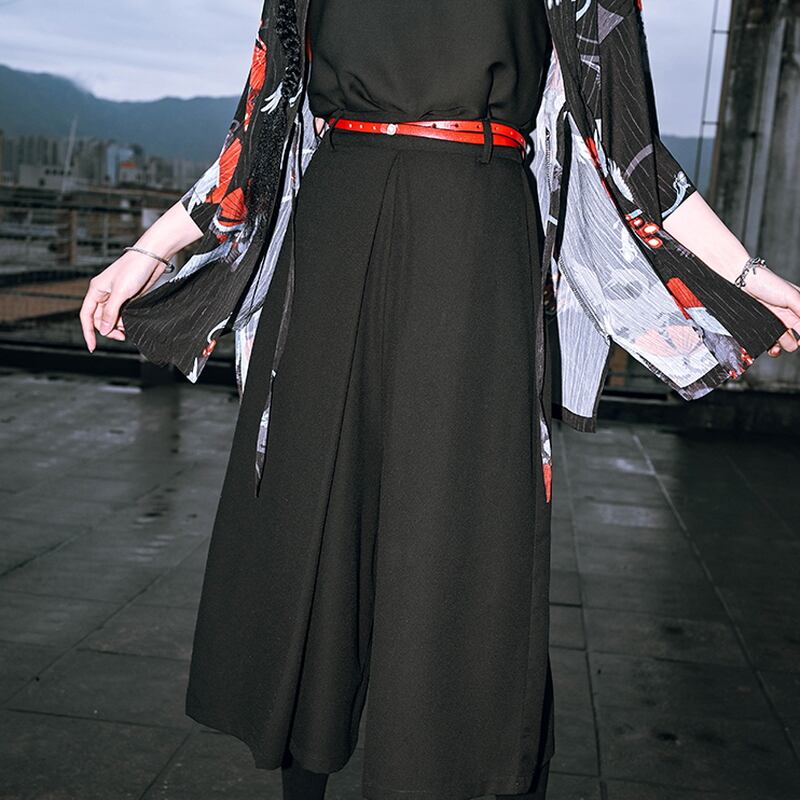サブカル 服 地雷系 通販 チャイナ風服 チャイナ風服 古怪舎 ワイドパンツ イージーパンツ ハイウエスト ロングドレープ 闇かわいい 大人ゴシックバンギャ ゴスロリ 中華服 チャイナ服 普段使い