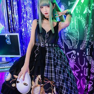 サブカル 服 地雷系 通販 ロリータ JSK ワンピ スカート チェック柄 レイヤード ZIPアップ ウエストベルト チェーン 地下アイドル系 コンカフェ 闇かわいい アイドル