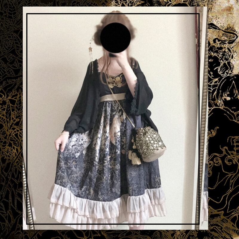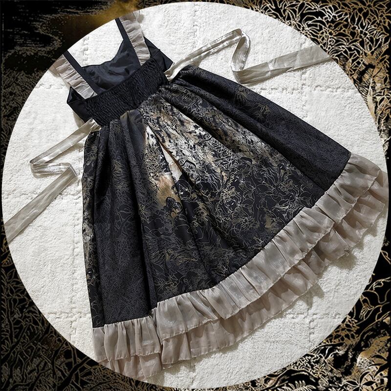 サブカル 服 地雷系 通販 ロリータ ワンピ ノースリーブ レトロ チャイナ服 中華服 闇かわいい ハイウエスト フリル サブカル
