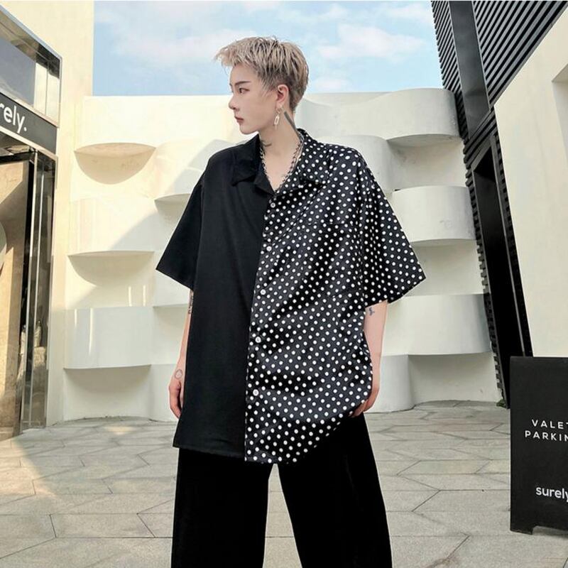サブカル 服 地雷系 通販 メンズ 半袖シャツ バイカラー 水玉 クール かっこいい