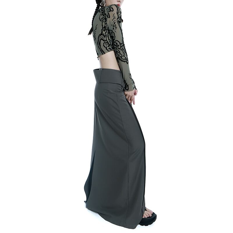 サブカル 服 地雷系 通販 モード系 スカート マキシ丈 ロング丈 ワイドベルト ハイスリット 大人増し キレカジ