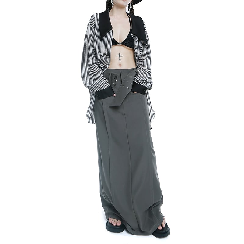 サブカル 服 地雷系 通販 モード系 長袖シャツ ストライプ柄 透け感 シアーシャツ ビッグシルエット 大人増し キレカジ