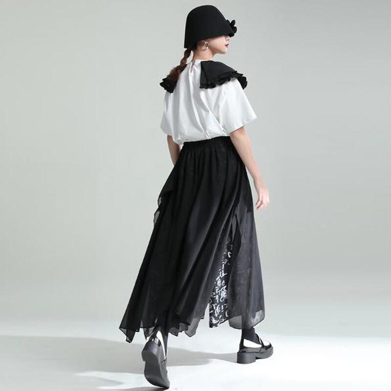 サブカル 服 地雷系 通販 モード系 ワイドパンツ 袴パンツ スカーチョ長袖シャツ ストライプ柄 透け感 シアーシャツ ビッグシルエット 大人増し キレカジ