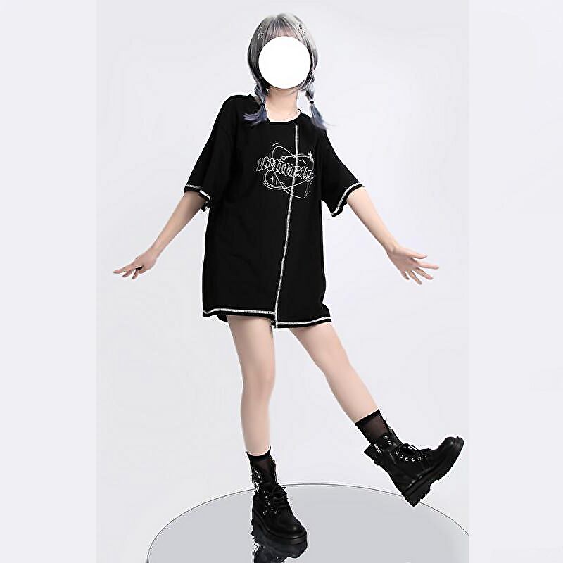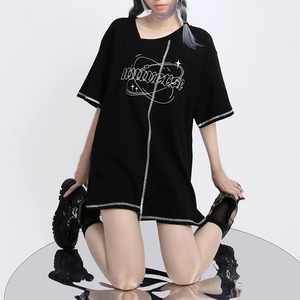 サブカル 服 地雷系 通販 Catwish ロリータ 半袖 Tシャツ 異形ネック 英字ロゴ 刺繍 Sweet Cool かわいい