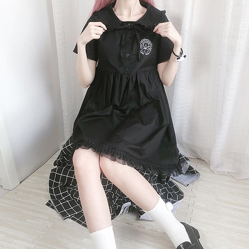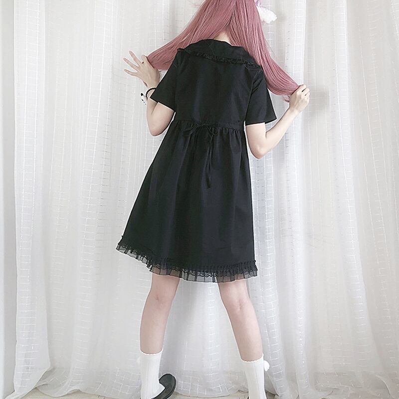 甘めなリボンとフリルが可愛いJKスタイルのミニ丈ワンピです
