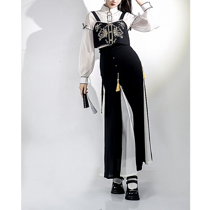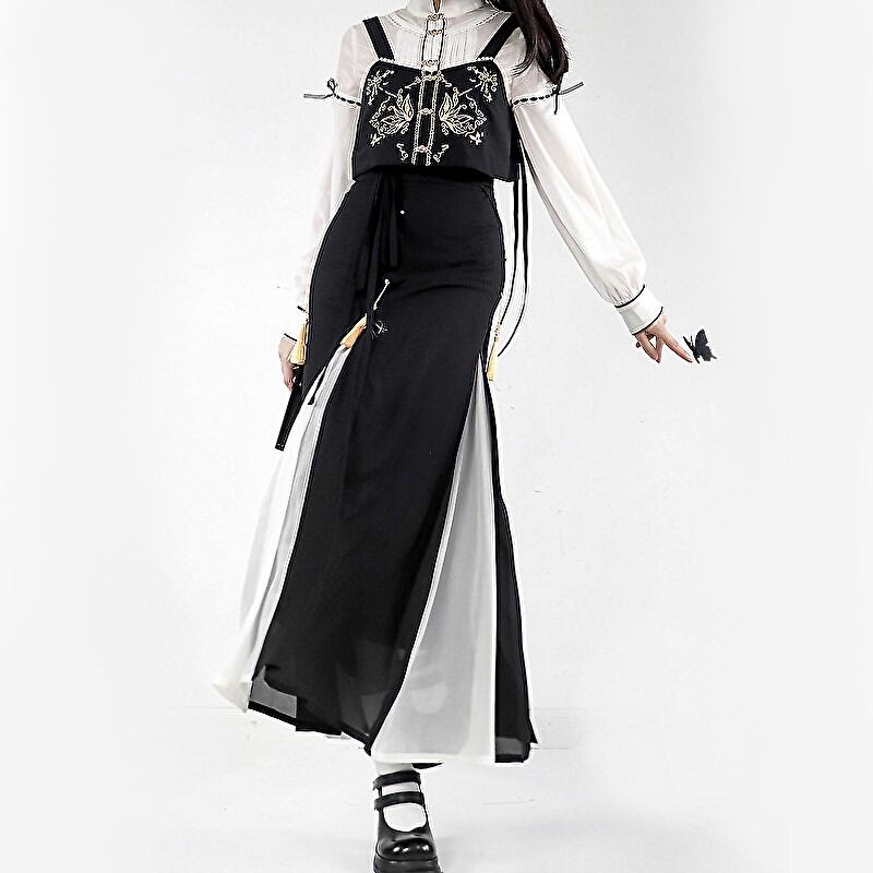 サブカル 服 地雷系 通販 ベスト 金糸 刺繍 butterfly チャイナ服 中華服 おしゃれ 闇かわいい