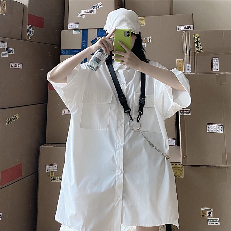 病み可愛いバックルハーネスとチェーンがおしゃれな半袖シャツ
