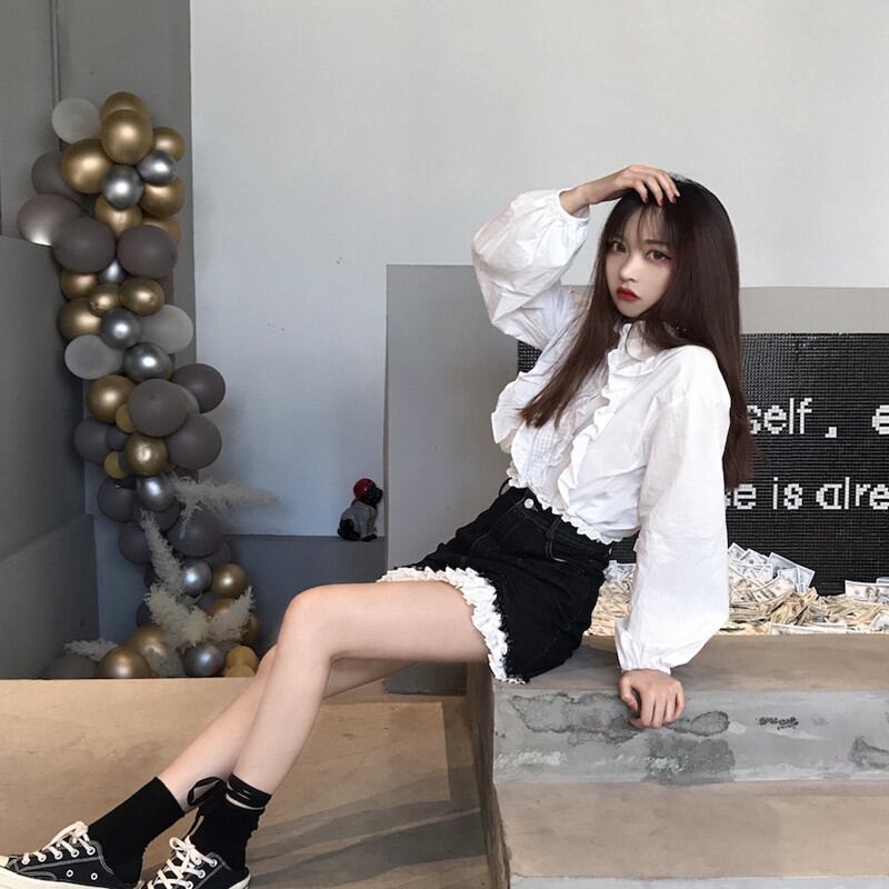 デニムにレースフリルがおしゃれなミニスカートです